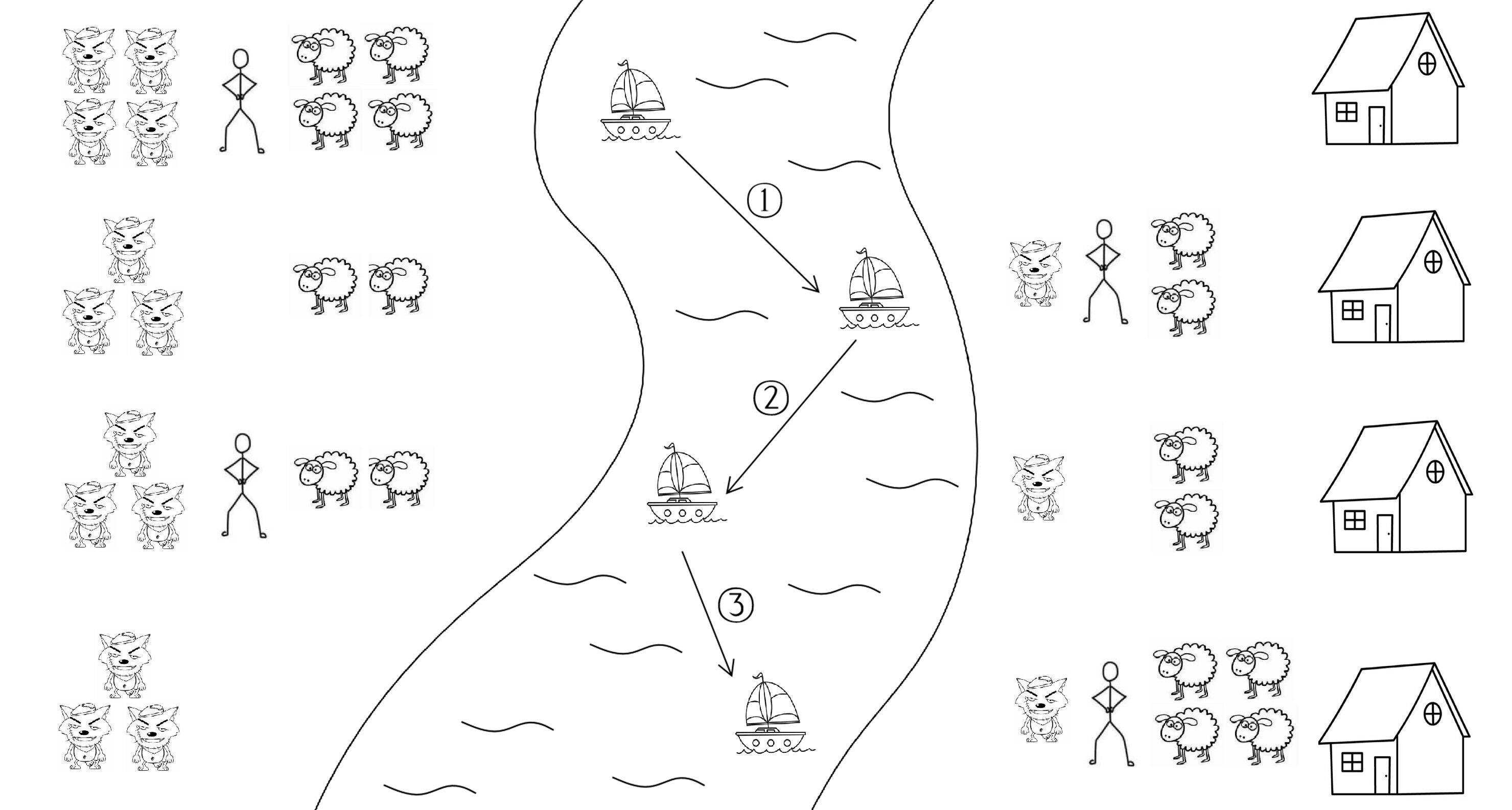 农夫养了 只羊,一天 只狼来到了河边。为了安全起见,农夫需要将所有羊安全运输回河对岸的羊圈中。