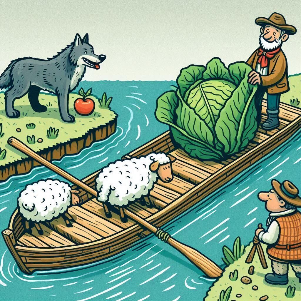 但由于生物本能,若农夫不在场,则狼会吃羊,羊会吃菜。你的目标是规划过河顺序,让所有物品安全抵达对岸。